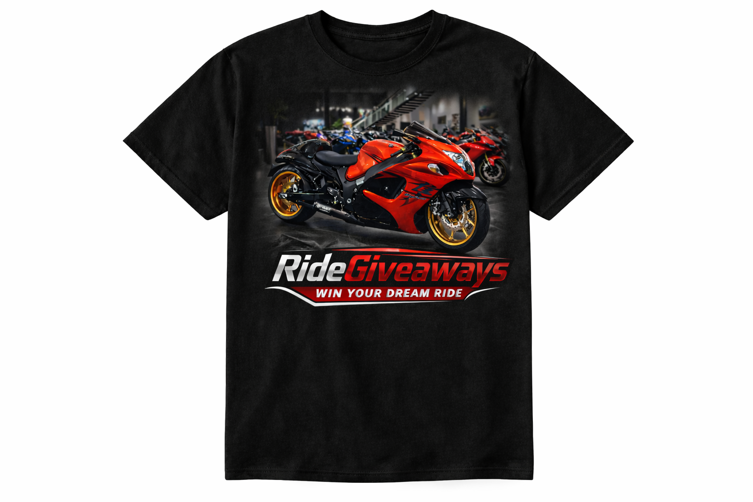 Official Ride Giveaways T-Shirt. High quality cotton shirt available in different sizes and colors.